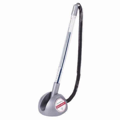 Ручка шариковая настольная BRAUBERG "Counter Pen", СИНЯЯ, пружинка, корпус серебристый, 0,5 мм, 143258