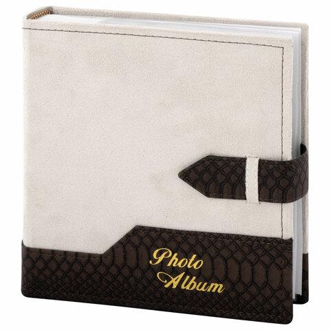 Фотоальбом BRAUBERG на 200 фотографий 10х15 см, под замшу, бумажные страницы, бокс, бежевый с коричневым, 390679