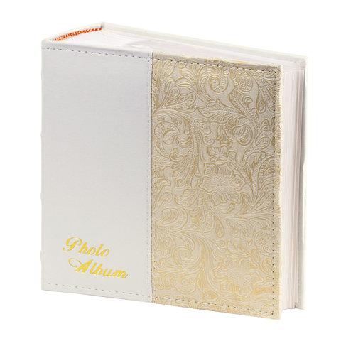 Фотоальбом BRAUBERG на 300 фото 10х15 см, под кожу, бумажные страницы, бокс, белый+золото, 391117