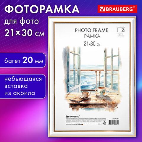 Рамка 21х30 см небьющаяся, багет 20 мм, пластик, BRAUBERG "HIT3", белая с двойной позолотой, 391381