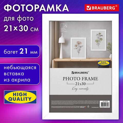 Рамка 21х30 см небьющаяся, аналог IKEA, багет 21 мм, МДФ, BRAUBERG "Idea", белая, 391370