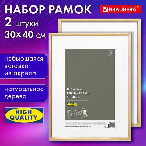 Рамка 30х40 см небьющаяся, КОМПЛЕКТ 2 штуки, багет 12 мм, дерево, BRAUBERG "Woodray", цвет натуральный, 391389