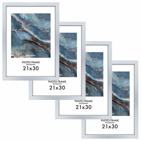 Рамка 21х30 см небьющаяся, КОМПЛЕКТ 4 шт., багет 16 мм, МДФ, BRAUBERG "Basic", белая, 391258