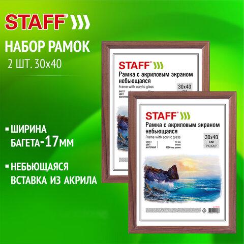 Рамка 30х40 см небьющаяся, КОМПЛЕКТ 2 штуки, багет 17 мм, дерево, STAFF "Classic", темно-коричневая, 391391