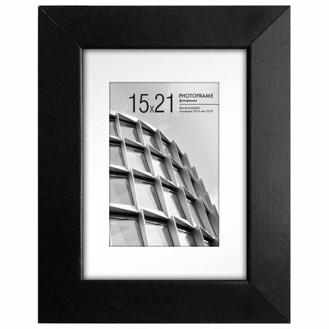 Рамка 21х30 см с паспарту 15х21 см небьющаяся, багет 5 мм, пластик, BRAUBERG "Smart", черная, 391280