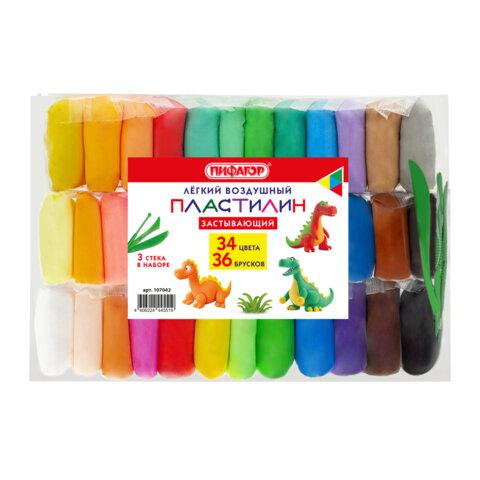 Пластилин супер лёгкий воздушный застывающий 36 цветов, 310 г, 3 стека, ПИФАГОР, 107041