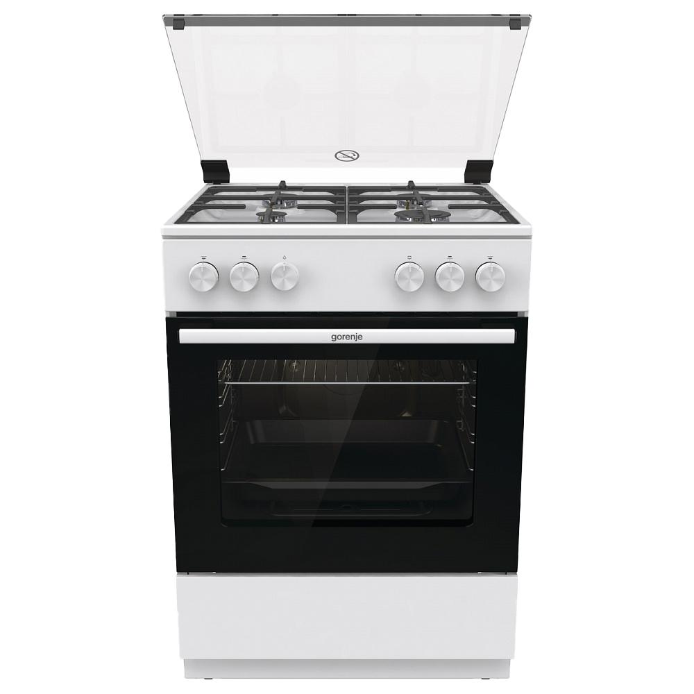 Газовая плита Gorenje, автоматический электроподжиг варочной поверхности и духовки, чугунные решетки, цвет белый