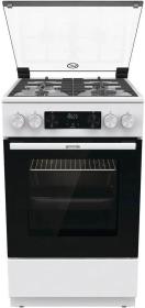 Комбинированная плита Gorenje, полезный объем 68 л, очистка паром AquaClean, сводчатая форма духовки, механическое управление, электроподжиг, цвет белый