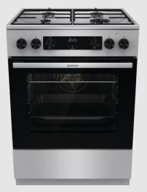 Комбинированная плита Gorenje / Комбинированная плита Gorenje, Эмаль SilverMatte, объем духовки 62 л, механическое управление, сенсорный программатор IconLED, многоуровневое приготовление, электроподжиг, рельефные направляющие, 2 стекла+термослой, энергоэф
