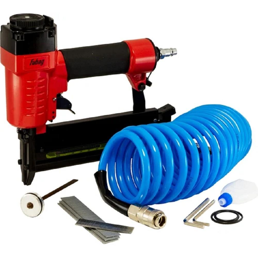 FUBAG Набор пневмоинструмента: пистолет SN4050, шланг 5 м, гвозди 15 мм, скобы 16 мм, боек [120106] {длина гвоздя 15-50мм_длина скобы_16-40мм_ширина скобы 5_7мм_1.05х1.25_100шт_23л / м}