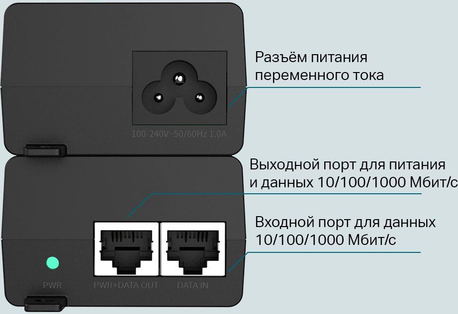 PoE-инжектор Fast Ethernet / PoE-инжектор Fast Ethernet на 1 порт. Совместим с оборудованием PoE IEEE 802.3af. Мощность PoE на порт - до 15.4W. Напряжение PoE - 50V(конт. 4,5(+); 7,8(-)). Порты: вх. - 1 x RJ45(10 / 100 Base-T), вых. 1 x RJ45(10 / 100 Base-T, P