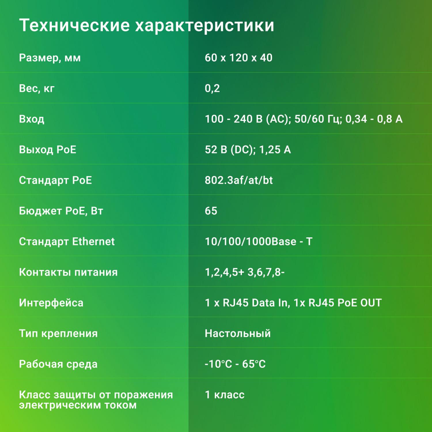 Инжектор PoE Digma DNP65W52GTXP 10 / 100 / 1000BASE-T 65Вт 100-240В(АС)