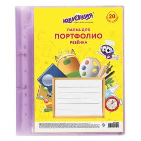 Папка для портфолио ребенка, 2 кольца, 20 файлов, полупрозрачная фиолетовая, ЮНЛАНДИЯ, 129802