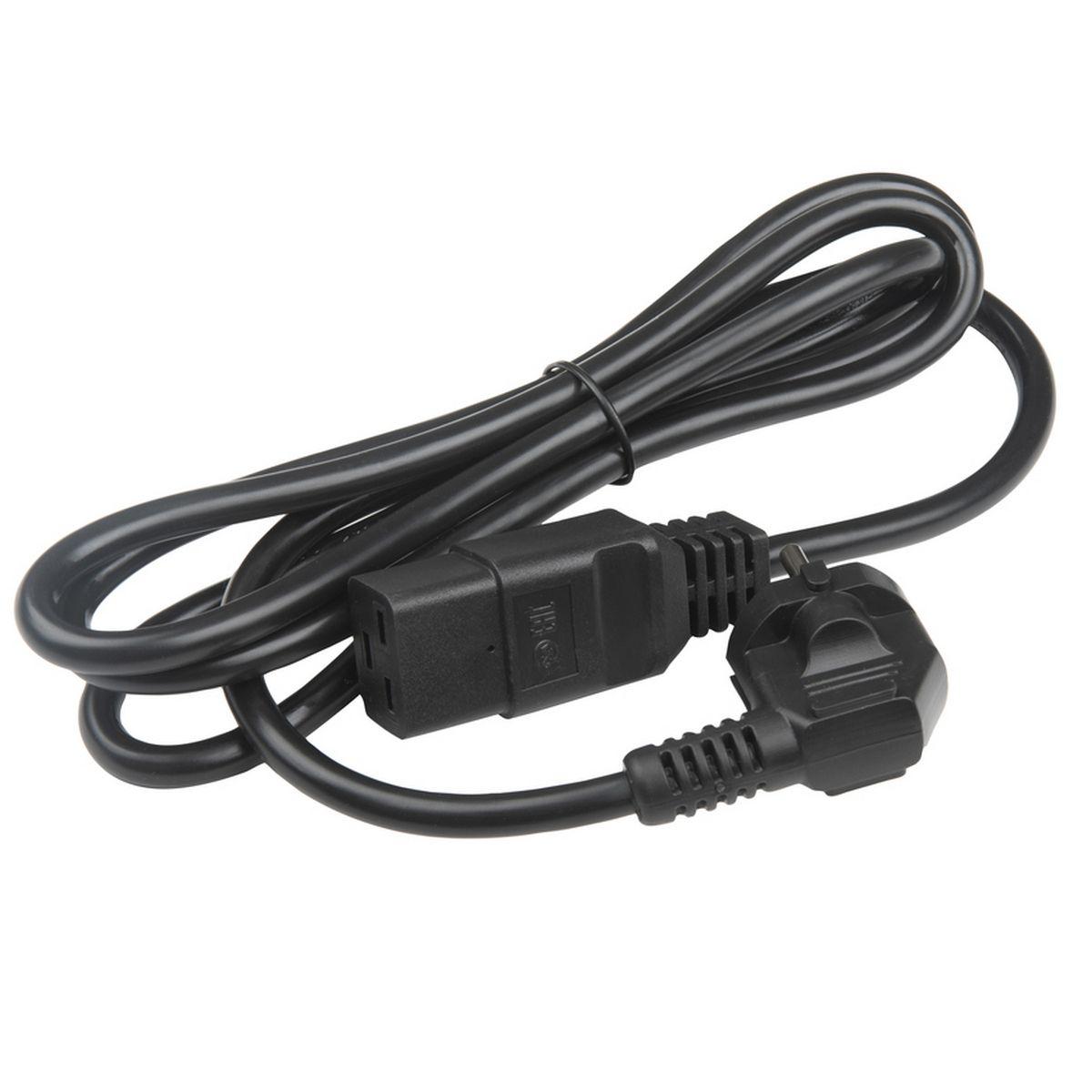Сетевой кабель Hyperline PWC-IEC19-SHM-1.8-BK питания (Schuko+C19) (3x1.5), 16A, угловая вилка, 1.8м, цвет черный (ПВС-АП-3*1,5-250-S22C19-16-1,8 ГОСТ 28244-96, ГОСТ 30851.1-2002 (МЭК 60320-1:1994))