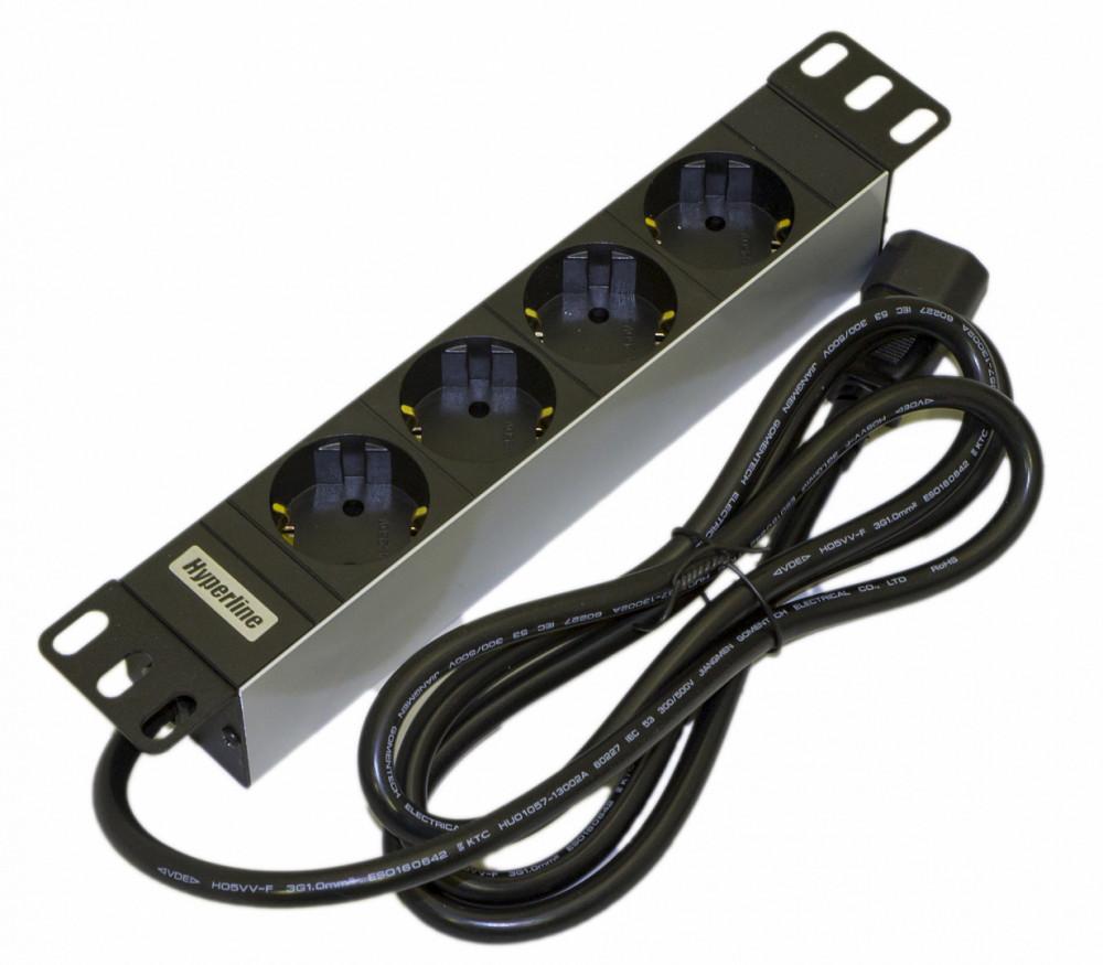 Hyperline SHE10-4SH-IEC Блок розеток / PDU 10" 4 розетки Schuko входной разъем IEC 60320 C14 без кабеля питания 10А 230В чёрный 270х44.4х44.4мм