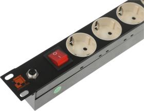 Hyperline SHE10-3SH-S-IEC Блок розеток / PDU 10" 3 розетки Schuko выключатель с подсветкой входной разъем IEC 60320 C14 без кабеля питания 10А 230В чёрный 270х44.4х44.4мм