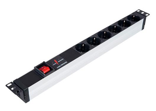 Блок распределения питания (PDU) 19" 16A с выключателем и защитой, Вых:6 Schuko, Вх: Schuko