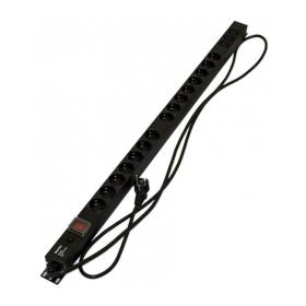 Hyperline SHE19-12IEC-2.5EU Блок розеток / PDU 19" 12 розеток IEC 60320 С13 кабель питания 25м с вилкой Sсhuko (CEE7 / 7) 16А 230В чёрный 482.6x44.4x44.4мм