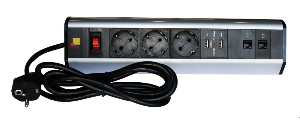 Блок распределения питания LanMaster (LAN-WA-DC / 3G+2UC+2C6) гор.размещ. 3x Schuko 2x USB 2x RJ45 базовые 16A Schuko 3м