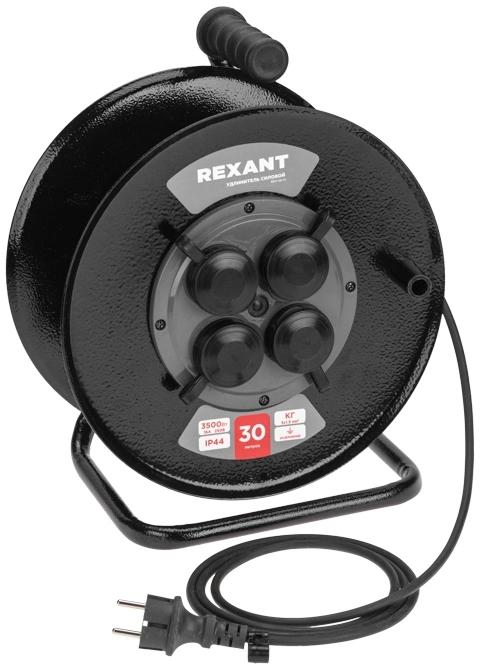 Удлинитель силовой Rexant КГ (13-5011) 3x1.5кв.мм 4розет. 30м КГ 16A метал.катушка черный