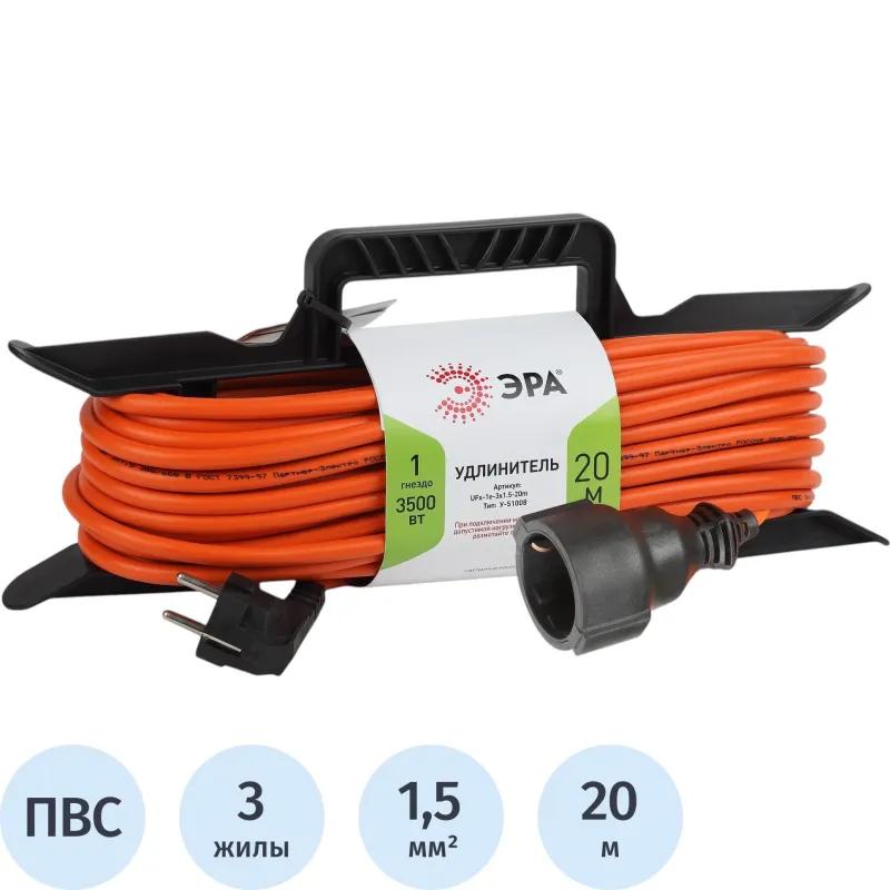 Удлинитель силовой ЭРА ПВС 3x1.5мм2 20м на рамке c / з 1 розетка