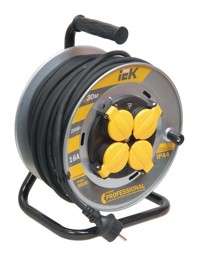 Удлинитель силовой IEK Industrial (WKP15-16-04-30) 3x1.5кв.мм 4розет. 30м ПВС 16A катушка желтый