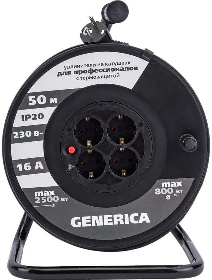 Удлинитель силовой Stayer 55076-50_z01 3x2.5кв.мм 4розет. 50м КГ катушка черный