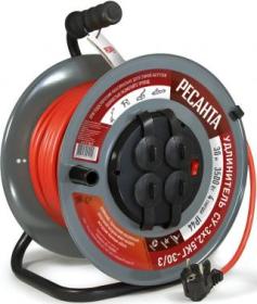 Удлинитель силовой Ресанта СУ-3х2,5КГ-30 / 3 (61 / 118 / 9) 3x2.5кв.мм 4розет. 30м ПВС 16A метал.катушка черный