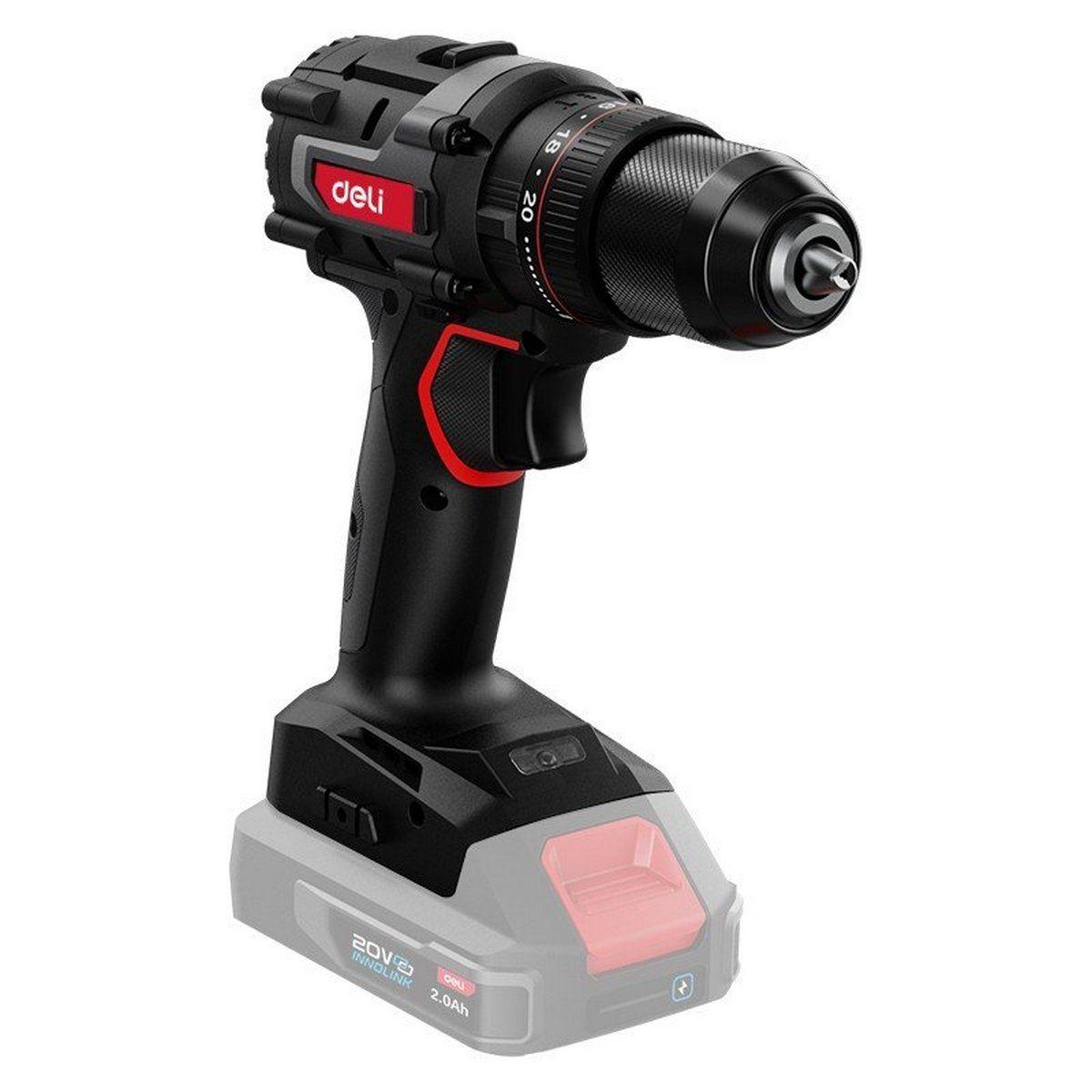 Дрель-шуруповерт аккумуляторная Deli DE-DZ20-2 (Без АКБ и ЗУ, 20В, 13мм, 70Нм, картон)