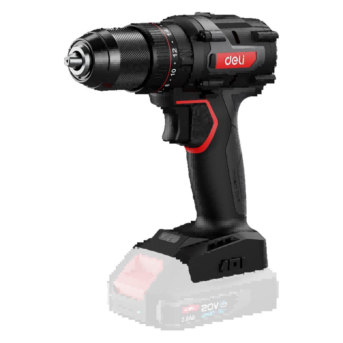 Дрель-шуруповерт аккумуляторная ударная Deli DE-CZ20-1 (Без АКБ и ЗУ, 20В, 13мм, 70Нм, картон)