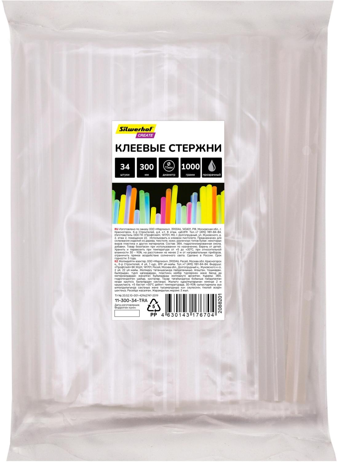 Cтержни клеев. для клеев.пист. Silwerhof 11-300-34-TRA дл.300мм D11мм прозрачный упак:34шт
