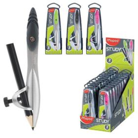 Циркуль MAPED (Франция) "Study", 120 мм, металлический, карандаш в комплекте, ассорти, пенал, 119410