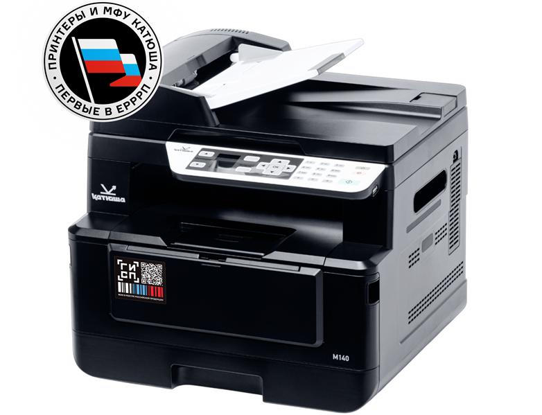 МФУ Катюша M140 принтер / копир / сканер, 40 стр / мин А4 Ч / Б, Скан: цвет / чб, CPU 1200 МГц, Ethernet, USB, Wi-Fi (опция)Пр-во РФ, 3 года гар. МПТ