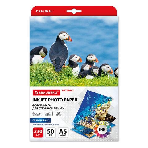 Фотобумага глянцевая, А5, 230 г / м2, односторонняя, 50 листов, BRAUBERG ORIGINAL, 363977