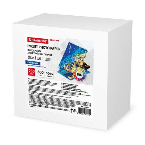 Фотобумага глянцевая, 10х15 см, 230 г / м2, односторонняя, 500 листов, BRAUBERG ORIGINAL, 363973