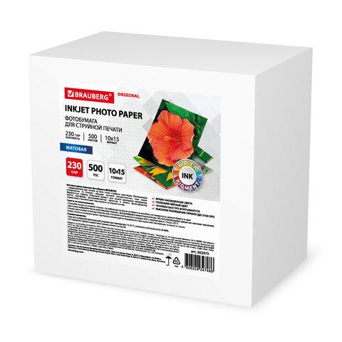 Фотобумага матовая, 10х15 см, 230 г / м2, односторонняя, 500 листов, BRAUBERG ORIGINAL, 363975