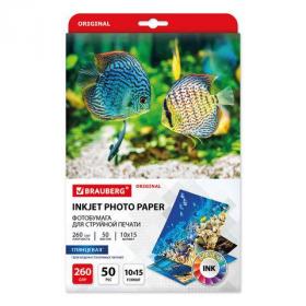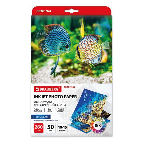 Фотобумага глянцевая, 10х15 см, 260 г / м2, односторонняя, 50 листов, BRAUBERG ORIGINAL, 363976