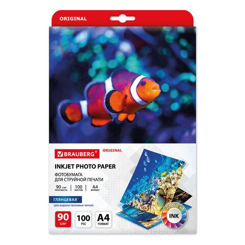 Фотобумага глянцевая, А4, 90 г / м2, односторонняя, 100 листов, BRAUBERG ORIGINAL, 363978