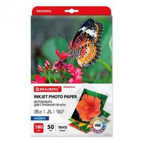 Фотобумага матовая, 10х15 см, 180 г / м2, односторонняя, 50 листов, BRAUBERG ORIGINAL, 363971