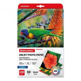 Фотобумага матовая, 10х15 см, 230 г / м2, односторонняя, 50 листов, BRAUBERG ORIGINAL, 363974