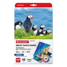 Фотобумага глянцевая, 10х15 см, 230 г / м2, односторонняя, 50 листов, BRAUBERG ORIGINAL, 363972