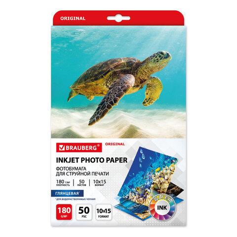 Фотобумага глянцевая, 10х15 см, 180 г / м2, односторонняя, 50 листов, BRAUBERG ORIGINAL, 364009