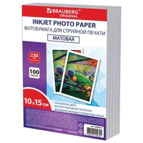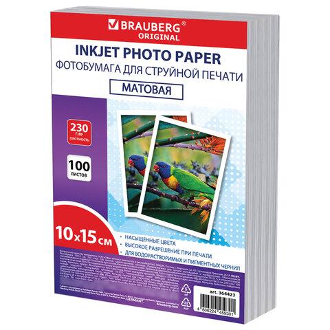 Фотобумага матовая, 10х15 см, 230 г / м2, односторонняя, 100 листов, ПАКЕТ, BRAUBERG ORIGINAL, 364423