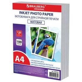 Фотобумага матовая, А4, 120 г / м2, односторонняя, 100 листов, ПАКЕТ, BRAUBERG ORIGINAL, 364425