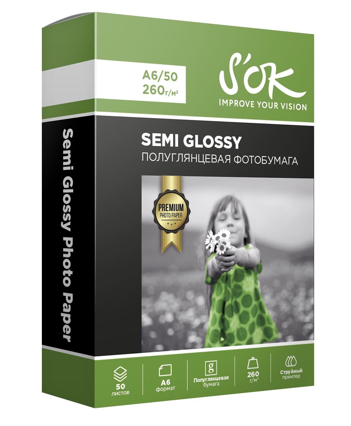 Фотобумага Premium S'OK полуглянцевая, формат А6, плотность 260г / м2, 50 листов