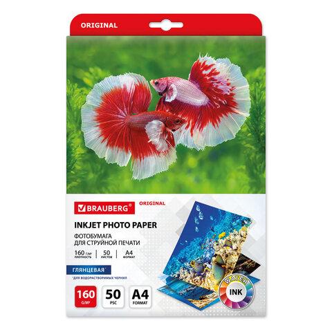 Фотобумага глянцевая, А4, 160 г / м2, односторонняя, 50 листов, BRAUBERG ORIGINAL, 363984