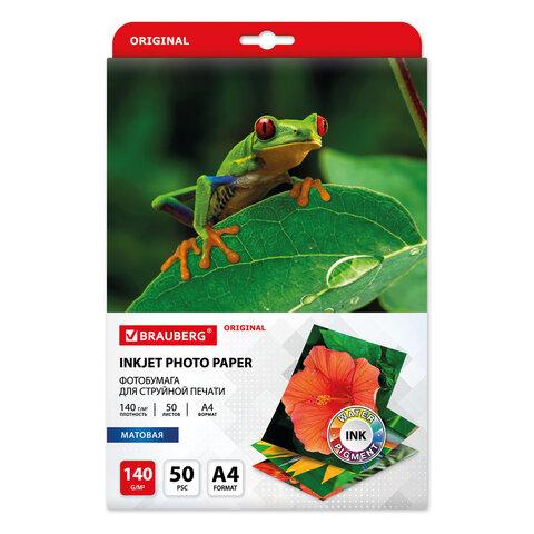 Фотобумага матовая, А4, 140 г / м2, односторонняя, 50 листов, BRAUBERG ORIGINAL, 363983