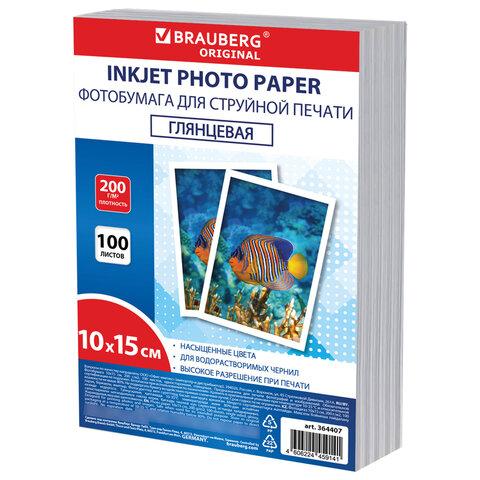 Фотобумага глянцевая, 10х15 см, 200 г / м2, односторонняя, 100 листов, ПАКЕТ, BRAUBERG ORIGINAL, 364407