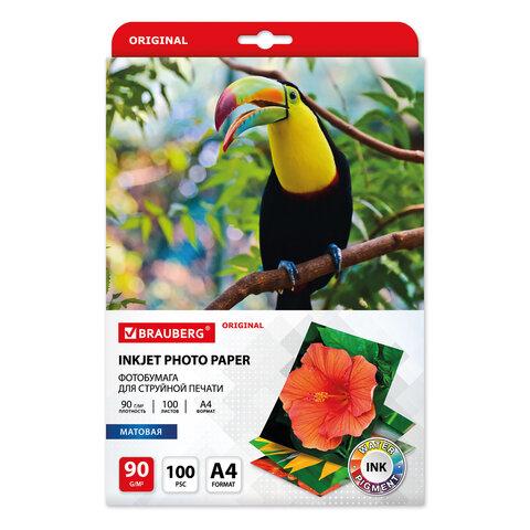 Фотобумага матовая, А4, 90 г / м2, односторонняя, 100 листов, BRAUBERG ORIGINAL, 363979