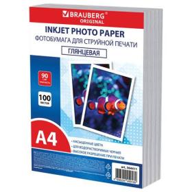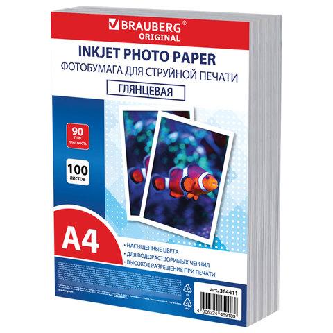Фотобумага глянцевая, А4, 90 г / м2, односторонняя, 100 листов, ПАКЕТ, BRAUBERG ORIGINAL, 364411